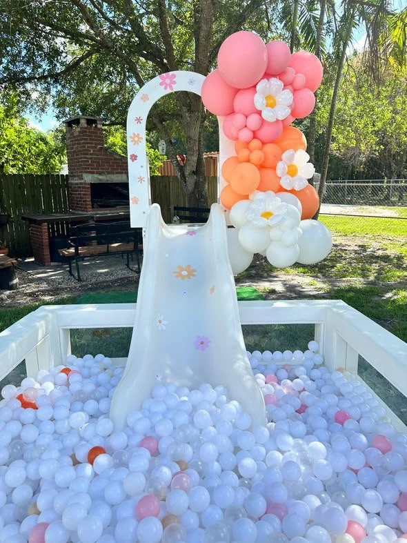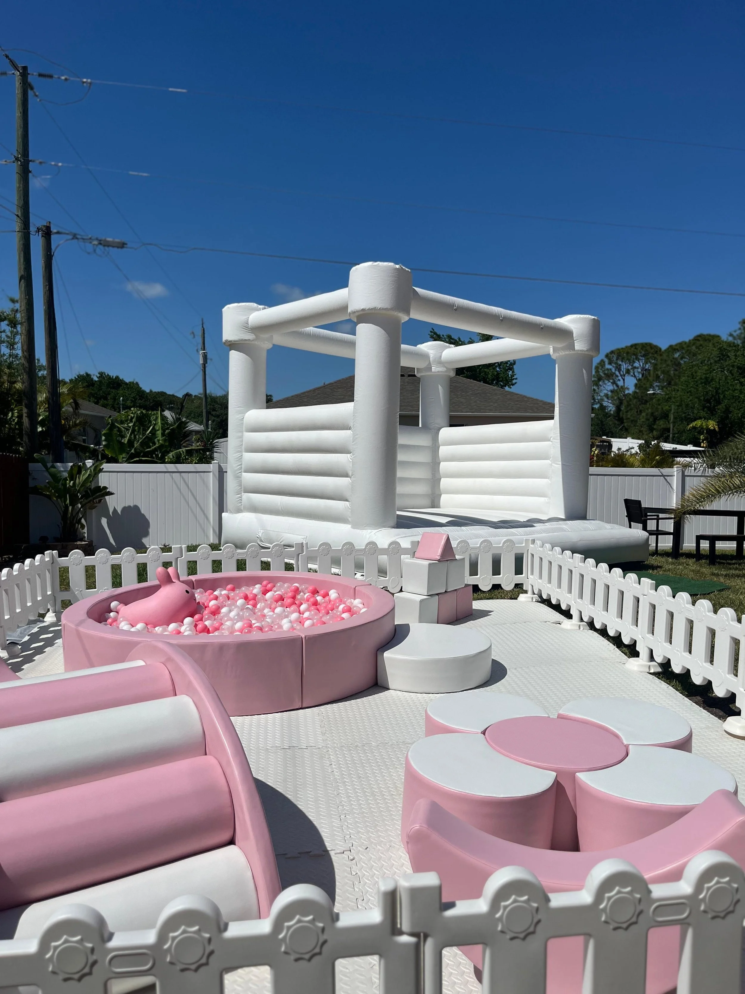 Our Slide Haven is perfect for kiddos looking to climb, jump, and slide and have extra fun with a spacious ball pit! The Slide Haven is 15 x 15